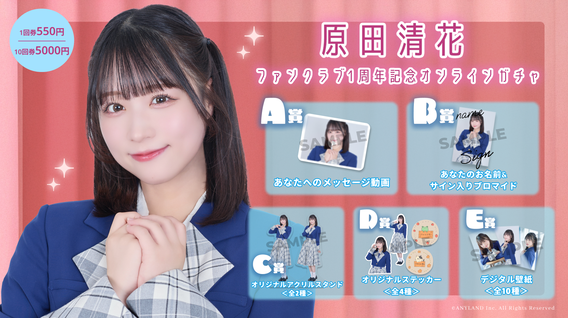 【原田清花】ファンクラブ1周年記念オンラインガチャが 11月1日より開催決定!